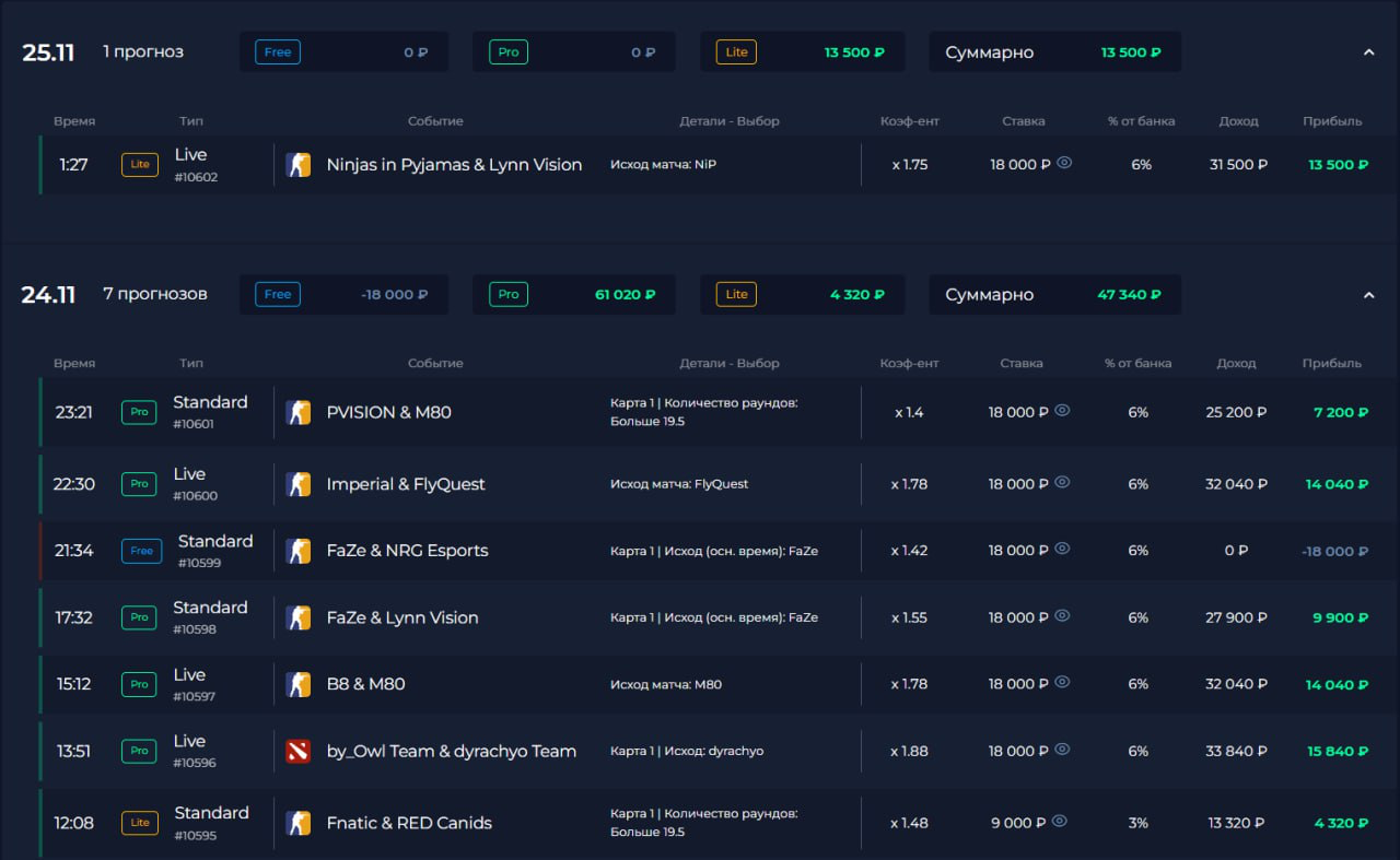 В остальном – стабильные LIVE-коллы с коэффициентом 1,4+ и стабильная прибыль с каждого второго матча, который команда брала в работу.